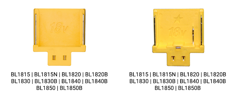 Tegenwoordig hebben alle accu machines van Makita een ster-merkteken op de aansluiting van de accu. Deze aanpassing is voor het extra beveiligingssysteem. Het werkt perfect als de accu ook een ster-merkteken bevat.